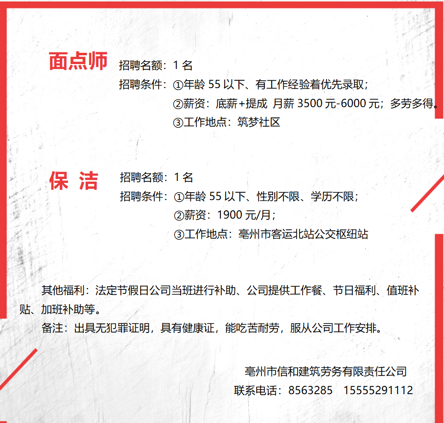 招聘面點(diǎn)師、保潔